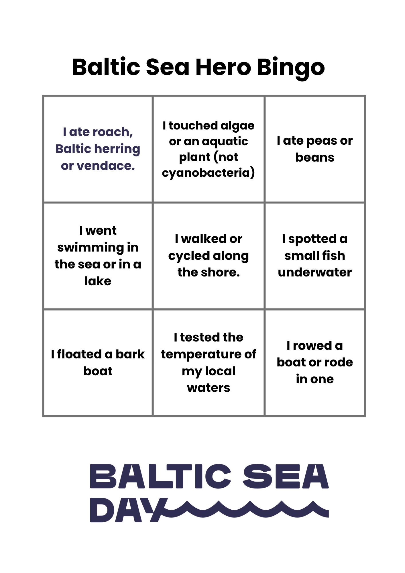 Did you eat fish from the Baltic Sea last summer? Did you ride your bike along the coast? Check off the things you’ve done this summer. If you get a row of three squares, shout “Bingo”!
