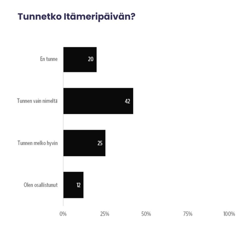 Vuonna 2024 Itämeripäivän melko hyvin tuntevia tai siihen itse osallistuneita oli yli kolmannes vastaajista – yhteensä 37 prosenttia, kun vastaava luku vuonna 2022 oli 23 prosenttia.