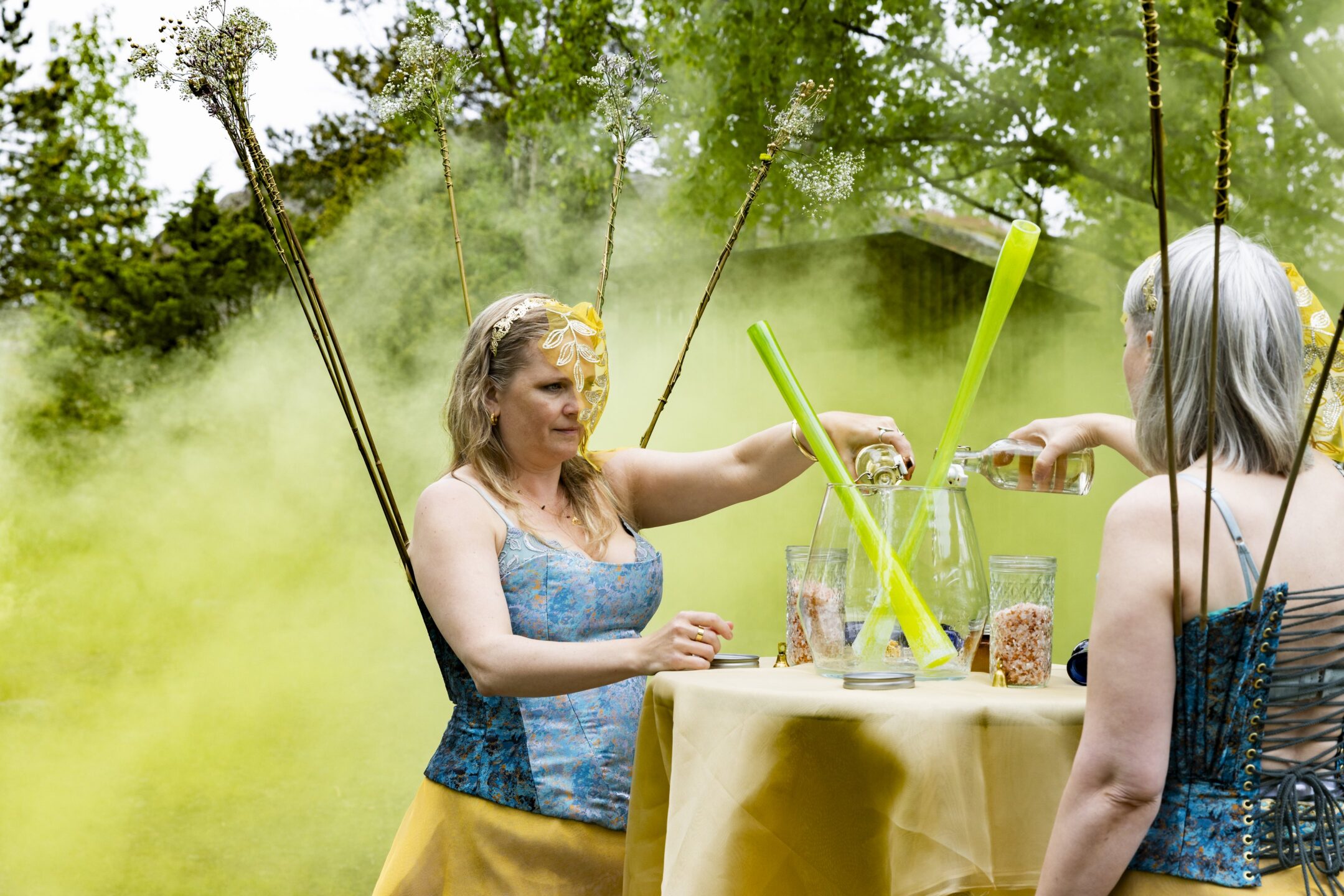 LOCUS / Thale Blix Fastvold ja Tanja Thorjussen opastavat yleisön Vallisaaren lammelle, jossa heidän taideteoksensa sijaitsee. Siellä he esittävät performanssin, joka on vuoropuhelu lammessa olevien veistosten kanssa ja kunnianosoitus meriajokkaalle.