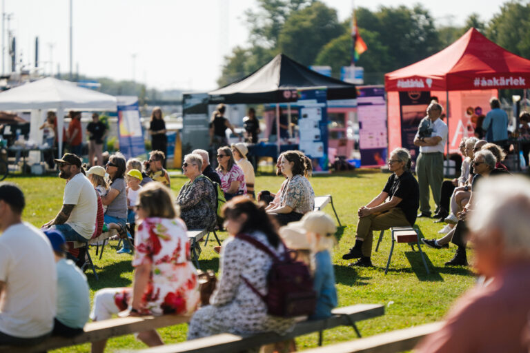 Suomen Joutsenen edustalta löydät erilaisia telttapisteitä, joissa voit esimerkiksi tutustua vedenalaiseen äänimaailmaan, pelata kosteikkopeliä tai suorittaa hauskan Itämeri-teemaisen rastiradan. Saat myös kekseliäitä ideoita esimerkiksi vaatteiden kunnostukseen sekä ruokahävikin pienentämiseen. Nurmialueelta löytyy myös paljon lapsille mieluisaa ohjelmaa, kun esimerkiksi Face Art Finland loihtii perheen pienimmille meriaiheisia kasvomaalauksia kello 17–19.