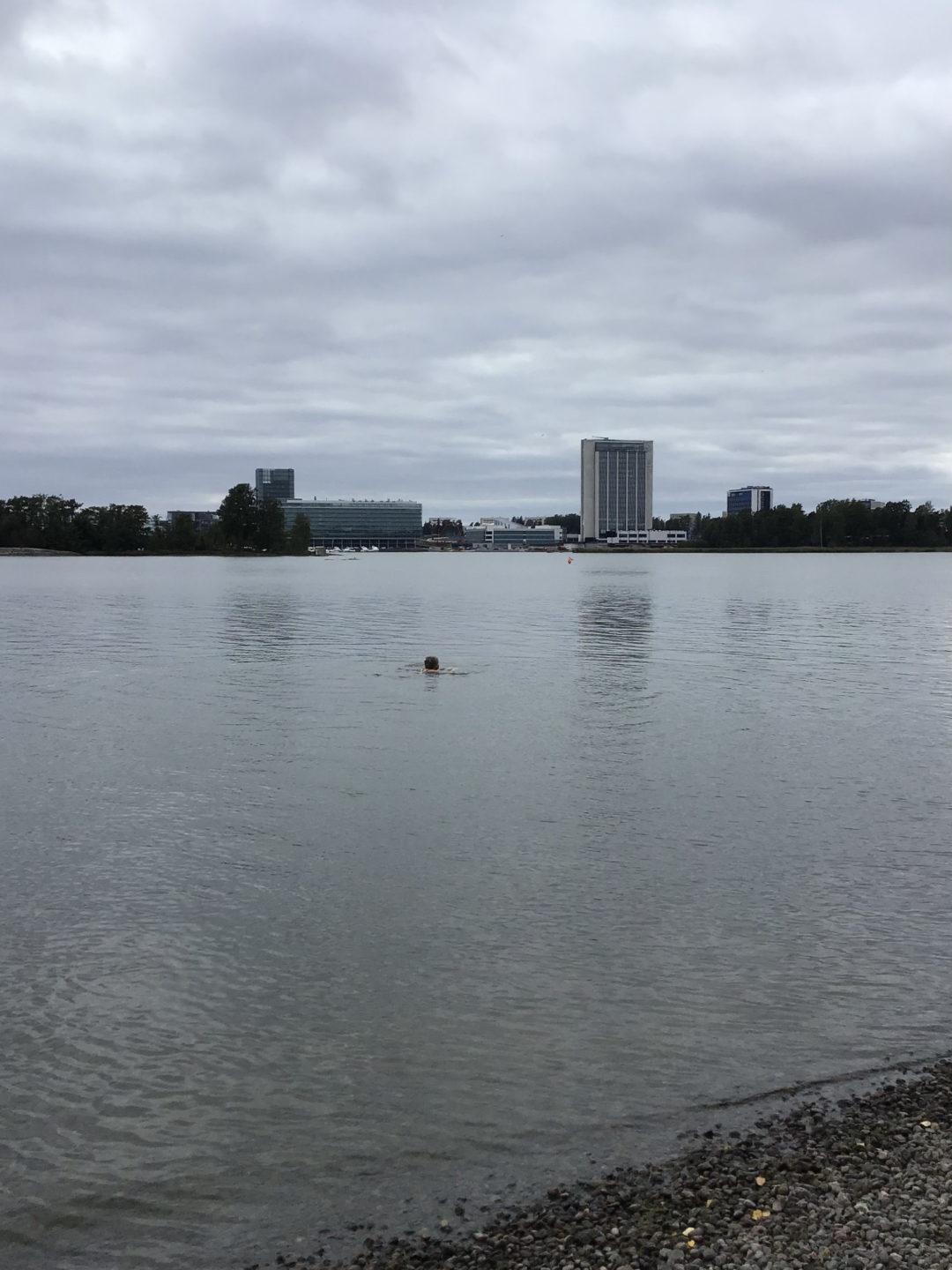Ei oikeastaan pulahdus vaan rauhallinen pitempi uinti yllättävän lömpimässä vedessä Lehtisaaren rannassa Helsingissä. 💙