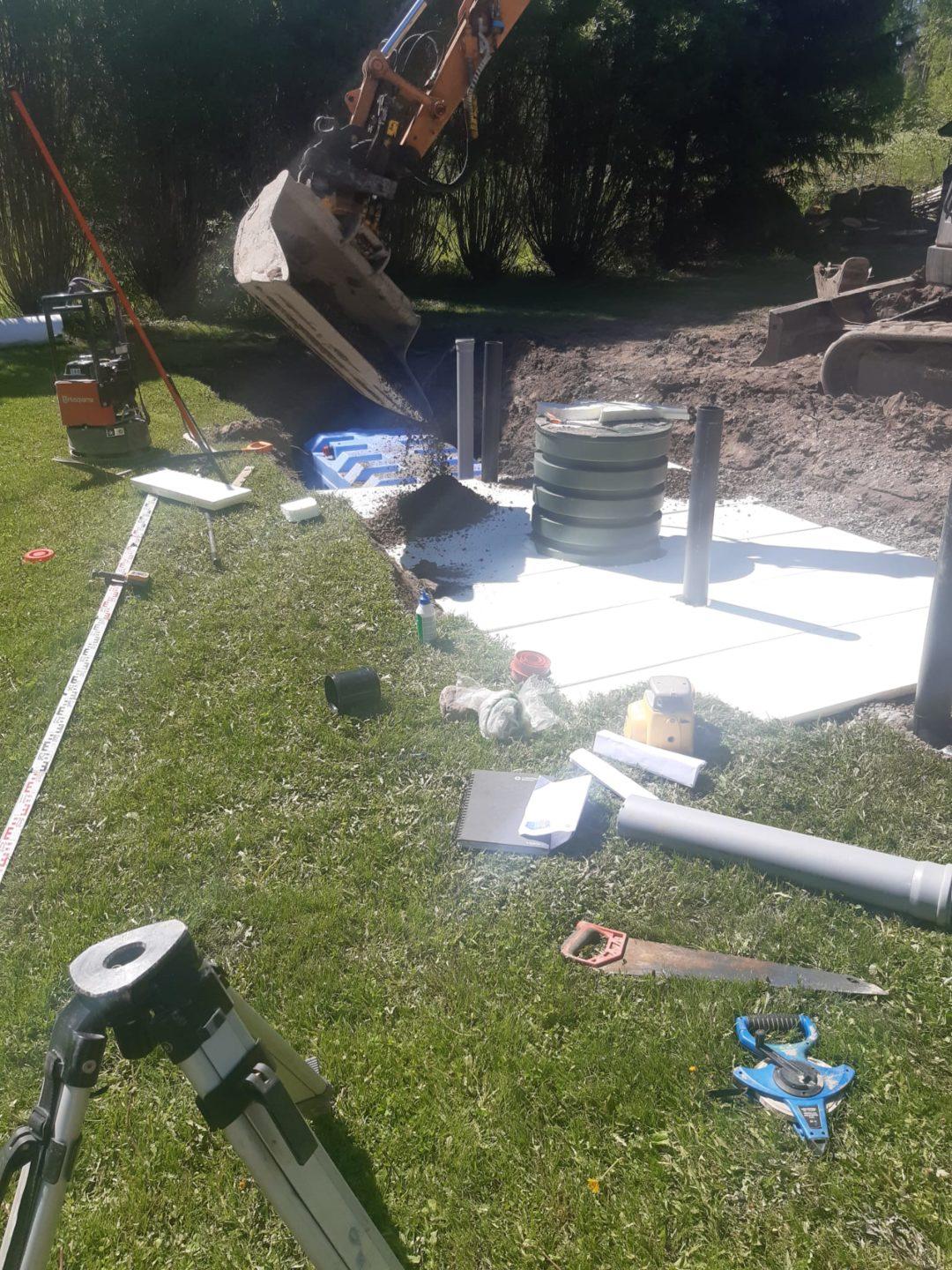 Kuvissa oleva järjestelmä (INDRÄN Biosuodatin 5ce, WC+harmaa vesi) on asennettu keväällä 2022 ja käsittelee mökin wc-vedet ja harmaat vedet. Lisätietoa tästä linkistä.